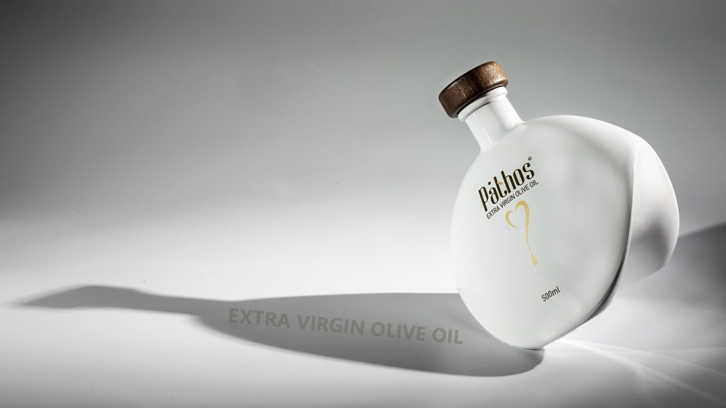 Το ελαιόλαδο Pathos, βραβευμένο και βιολογικό, διατίθεται σε ένα προσεγμένο γυάλινο μπουκάλι των 500ml, μέσα σε πολυτελή χάρτινη συσκευασία που αποπνέει κομψότητα και αυθεντικότητα. Η σχεδίαση του μπουκαλιού αποτυπώνει τη βαθιά σύνδεση με το ιερό δέντρο της ελληνικής γης.